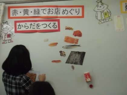 栄養教諭の山田先生から栄養素の3つの働きについて話を聞きました。