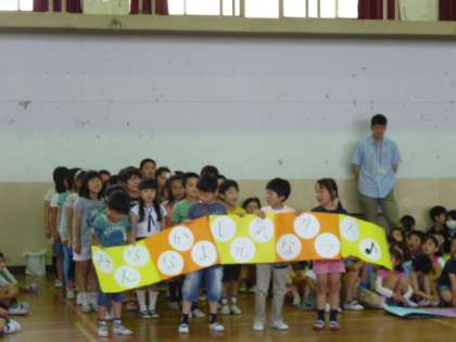 目標にこめられた考えなどを全校のみんなに伝えました。