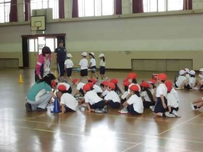 1年生は小学校で初めての運動会に向けて,団体競技の練習をしました。