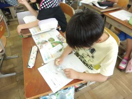 その後,種をさわったり,虫眼鏡で見たり,においをかいだり…