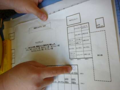 各部屋の説明を書いた手作りの看板をしっかりと読んで説明していました。