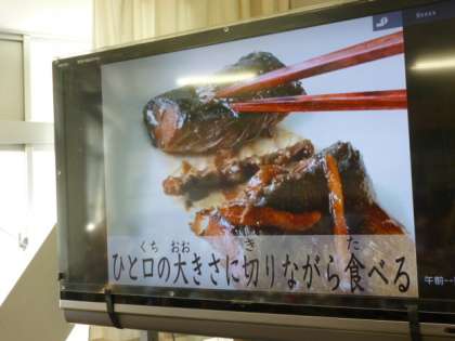 子どもたちは,魚のほぐし方の画像をしっかりと見ていました。