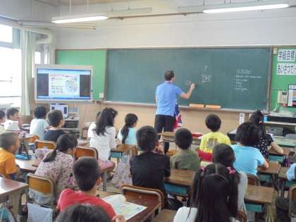 ダレン先生にきていただき,外国語で物を数える学習をしました。