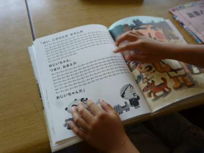 図書館で子どもたちは,お気に入りの本を見つけていました。