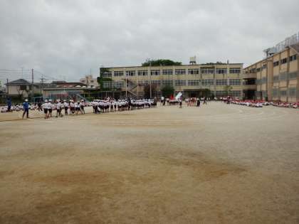 天候が気になるところですが,明日はできると信じて全校で運動会の練習をしました。