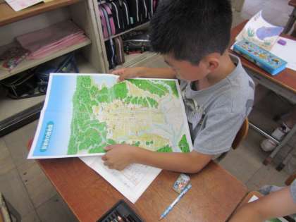 社会科「わたしたちのまち」では,初めて京都市の地図を見ました。