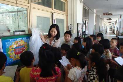 総合的な学習の時間では,ごみゼロの日のごみの量から,「普段の学校ではどれくらいのごみが出ているのだろう?」と疑問をもった子どもたち。さっそく管理用務員の武村さん,栄養教諭の山田先生にどれくらいのごみが出ているのかをインタビューしに行きました。2人の話すことを真剣にメモし,その量に驚く子もたくさん見られました。「今度はおうちのごみ量を調べてみたい!」と次の課題をもつこともできました。
