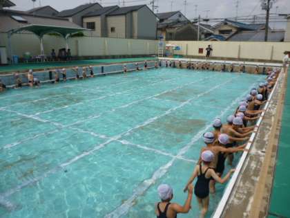 じゃんけんや,かけっこをしたり,プールの壁を手で持ちながらプールの中をめぐったりしました。