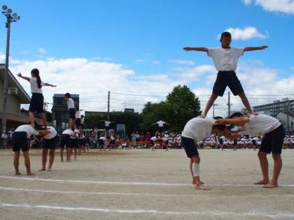 友だちと息を合わせたり,支えたり,支えられたりしながら技を練習してきました。