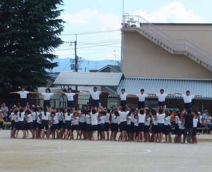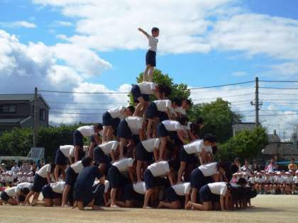 人間起こしの「せーの」の掛け声,7段ピラミッドの「もう少しや,がんばれ!」という励まし合いの声。とてもかっこよかったです。