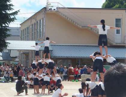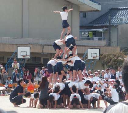 6年生の組体操。3段,4段,5段タワーです。