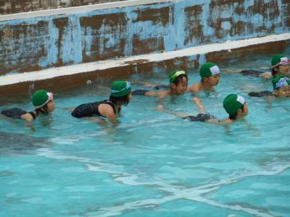 冷たいシャワーにどきどきしながらも,プールでは,かえるやワニに変身しながら,楽しむことができました。