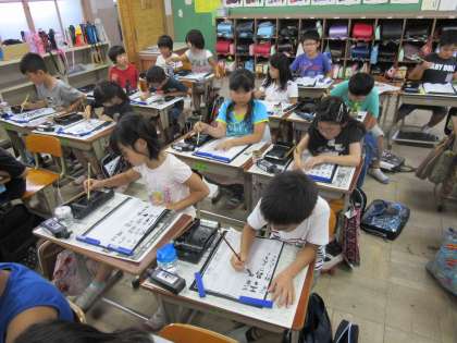 習字の学習で,小筆を初めて使いました。