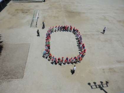 南区制60年を記念して,「だいすきみなみ区60年」のメッセージを南区の小学生たちの人文字で作ることになりました。