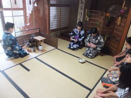 7月8日(水)総合的な学習の時間に茶道体験を行いました。土曜教室でもお世話になっている,田中宗恵先生のお宅で体験させていただきました。