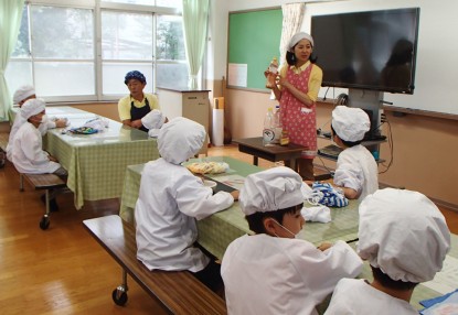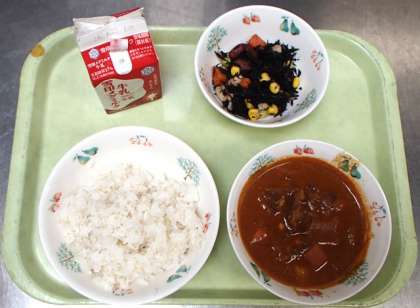 給食室でのルーづくりも見て,おなかがぐっとすいたところで,いよいよ給食時間。