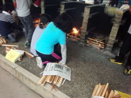 まずは,みんなで協力して火をおこします。