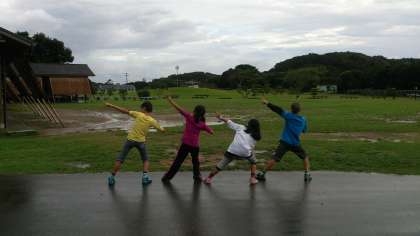 代表のリーダー四人で夕べの集い(旗下ろし)に行きました。
