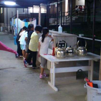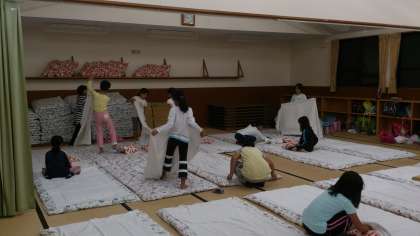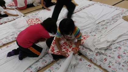 歯みがきを忘れず,テキパキとシーツを二人組で敷いていました。
