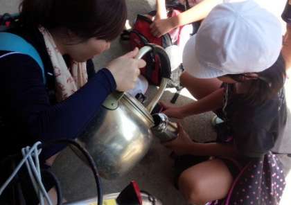 今日はすごく暑いので,昨日と違ってお茶の追加が多いです。