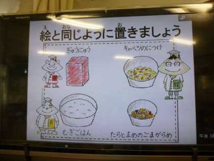 給食当番さんは,「豆は分かるけど他はわからへん」と言いながら