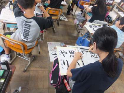 毛筆の学習で「思いやり」を書きました。