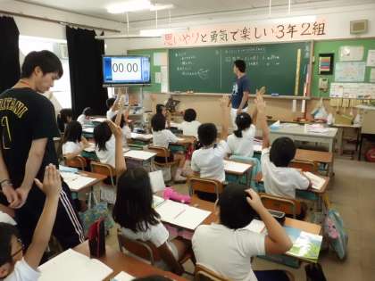 3年生は長さの学習をしています。今日は,教室の縦横の長さを