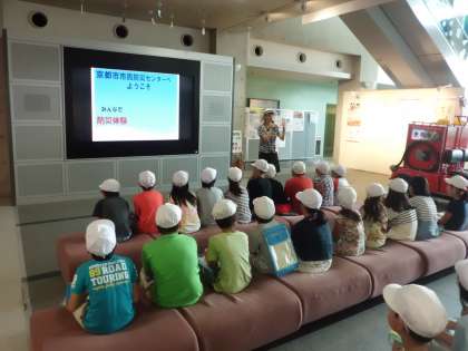 なぜ避難訓練をするのかをクラスで考えました。その後,実際にその災害でどのような状態になるのかを体験しようと,京都市市民防災センターに行きました。はじめにグループに分かれて所員さんの話を聞きました。