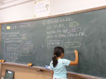2年生は,算数科の時間に「ふえたり へったり」を学習しています。