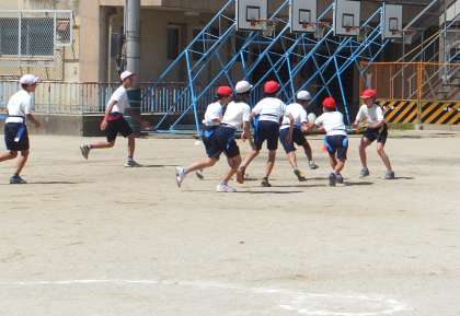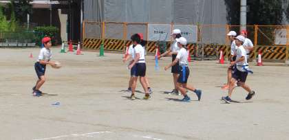 体育科の学習でタグラグビーに取り組んでいます。