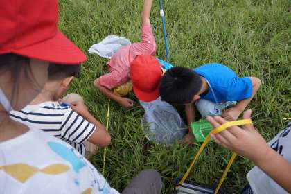 バッタはとっても元気がよく,逃げ足が速くて,「いま跳んだのに見つからない!」という声が聞こえました。