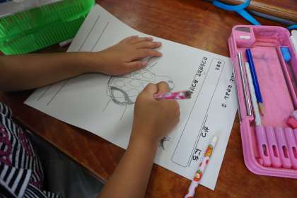 学校に戻り,捕まえた虫たちをじっくり観察しました。
