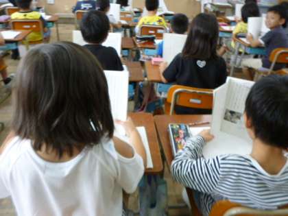 口を大きく開けて,すらすらと読むことをがんばっています。