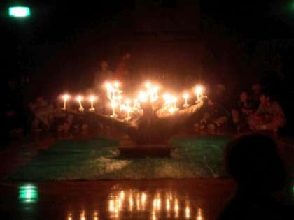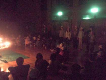 1日目の夜を迎えました。プレイホールに集まり,キャンドルファイヤーです。