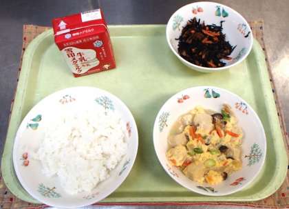 高野どうふの卵とじは,高野どうふにけずりぶしでとっただし汁をたっぷりふくませ,そのおいしさを卵でとじこめました。しっかり火が通りながらも,コロンコロンとした卵の食感と,だし汁がぎゅっとつまった高野どうふの組み合わせが子どもたちにも食べやすかったようです。
