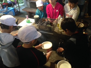おいしくカレーを食べた後は,みんなで後片付けです。