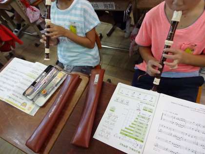 音楽の学習では,「ハローサミング」と「もののけ姫」の曲をリコーダーで吹いています。