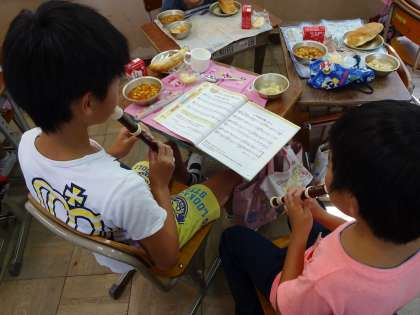 高いミの音を出すのが難しいですが,休み時間や給食を待っている時間を使って何度も練習する姿が見られます。