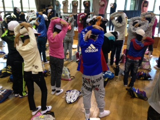 最終日の朝の集いでも、3分間体操で体を起こします。