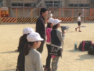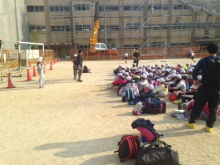 学校に到着して、解散の式をしています。山の家より、暑いです。