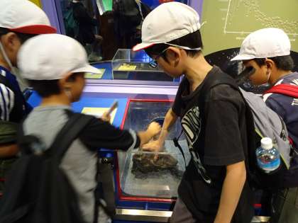 宇宙や星,世界をつくっている様々な物質について,たくさんのものが展示されていたり,科学の原理や法則を調べる実験装置をさわってみたりしました。