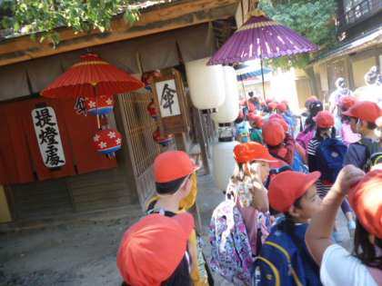 昔の町並のセットの中を通りながら,楽しく過ごしていました。