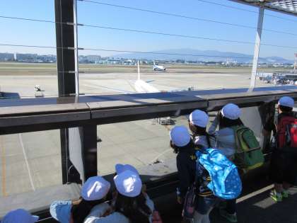 伊丹空港では,飛行機が飛んでいく様子を子どもたちは興味しんしんに見入っていました。