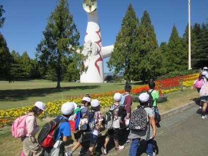 太陽の塔を初めて見る子も多く,とても喜んで見ていました。