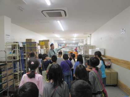 お店が工夫していることを見つけるために,店内を見学したり,店員さんにインタビューをしたりしました。また,普段は見ることができない魚や肉の加工するところや,倉庫を見せてもらうこともできました。