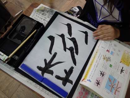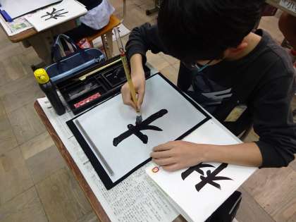 最後の「右はらい」は,なかなか上手く書けない様子でしたが,何度も練習するうちに筆圧のかけ方がわかってきたようです。