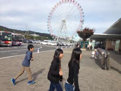 淡路SAに着きました。大きい観覧車に子どもたちはびっくりしていました。