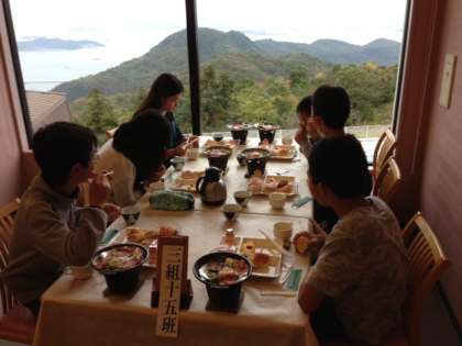 朝食の場所は昨日と同じですが、昨日の夜景とちがって、朝の瀬戸内海もとてもいい景色です!