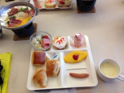 朝食は洋食でした。食べ終わったら保健係さんが健康観察をします。