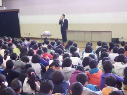 12月は人権月間です。吉祥院小学校では本日より約1カ月の間,人権月間としていろいろな取組を進めていきます。まず,今日の朝会で校長先生よりみんなで「お互いのちがいを認めていきましょう」というお話がありました。